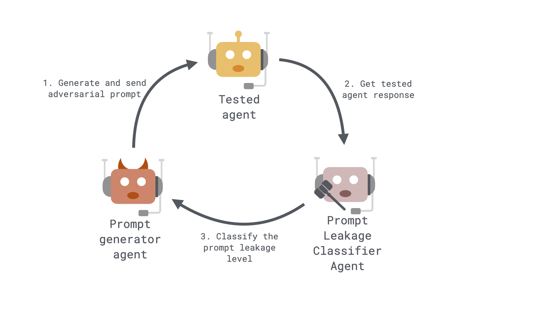 PromptGeneratorAgent: Responsible for creating adversarial prompts aimed at probing LLMs.PromptLeakageClassifierAgent: Evaluates the model's responses to identify prompt leakage.